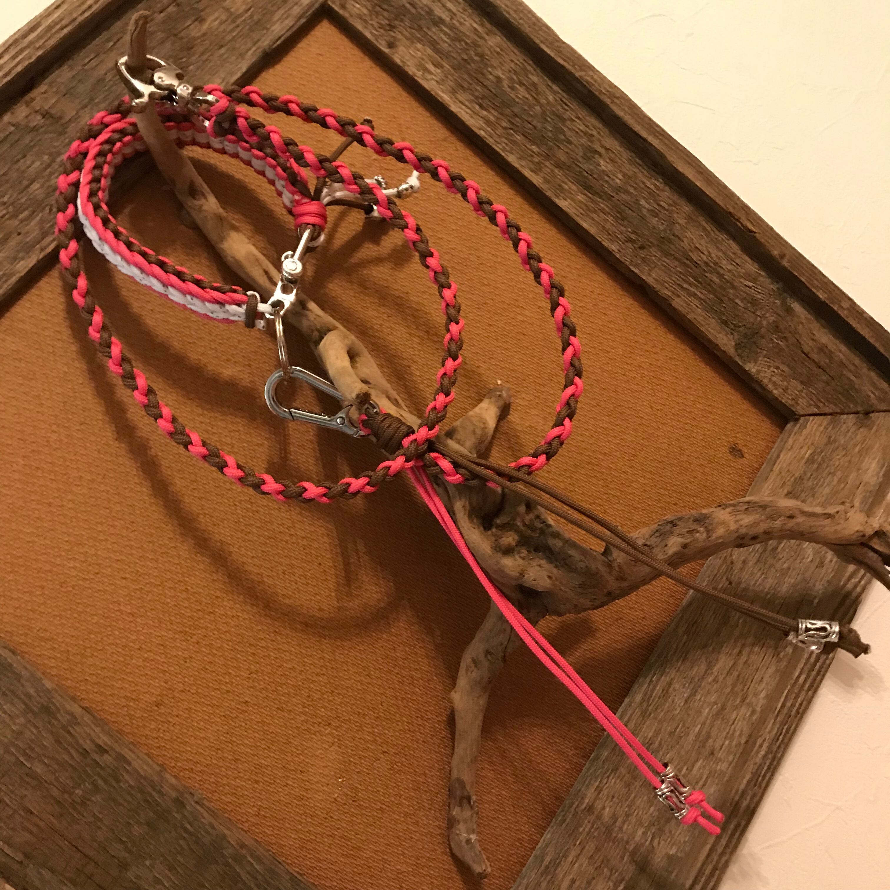 pink&brownに、リフレクター付きのwhiteをあしらったドックリーシュです。